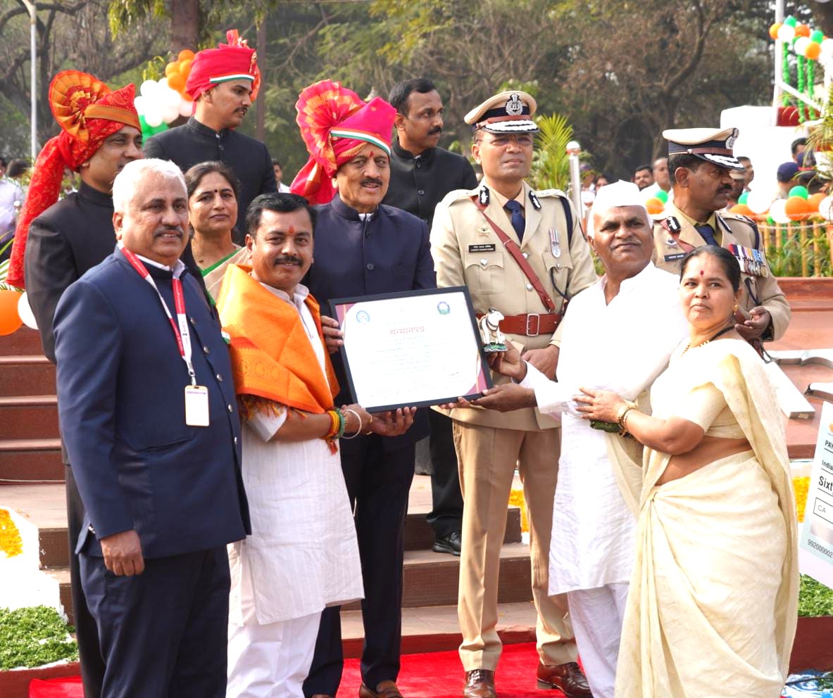 नाशिक (प्रतिनीधी) : देशी गोवंश संवर्धन, गोसंरक्षण व गोसेवा क्षेत्रात गेल्या अनेक वर्षांपासून सातत्यपूर्ण, निस्वार्थ आणि उल्लेखनीय कार्य करणाऱ्या इगतपुरी तालुक्यातील नांदडगाव येथील गोकुळधाम गोसेवा प्रतिष्ठान यांना महाराष्ट्र शासनाच्या महाराष्ट्र गोसेवा आयोग, पुणे यांच्या वतीने राबविण्यात येणाऱ्या महाराष्ट्र शुद्ध देशी गोवंश सन्मान योजना 2025–26 अंतर्गत जिल्हास्तरीय पुरस्काराने सन्मानित करण्यात आले आहे. प्रजासत्ताक दिनाच्या पार्श्वभूमीवर आयोजित भव्य सन्मान सोहळ्यात या संस्थेस श्रेष्ठ राजदूत म्हणून गौरविण्यात आले. हा मानाचा पुरस्कार मा. पालकमंत्री गिरीश महाजन यांच्या शुभहस्ते प्रदान करण्यात आला. यावेळी महाराष्ट्र गोसेवा आयोगाचे अध्यक्ष शेखर मुंदडा, सचिव डॉ. शामकांत प्रभाकर पाटील, आयुक्त (पशुसंवर्धन) डॉ. प्रविणकुमार देवरे, विभागीय आयुक्त, जिल्हाधिकारी, जिल्हा परिषदेचे अधिकारी, पशुसंवर्धन विभागाचे अधिकारी तसेच विविध सामाजिक संस्थांचे प्रतिनिधी मोठ्या संख्येने उपस्थित होते.