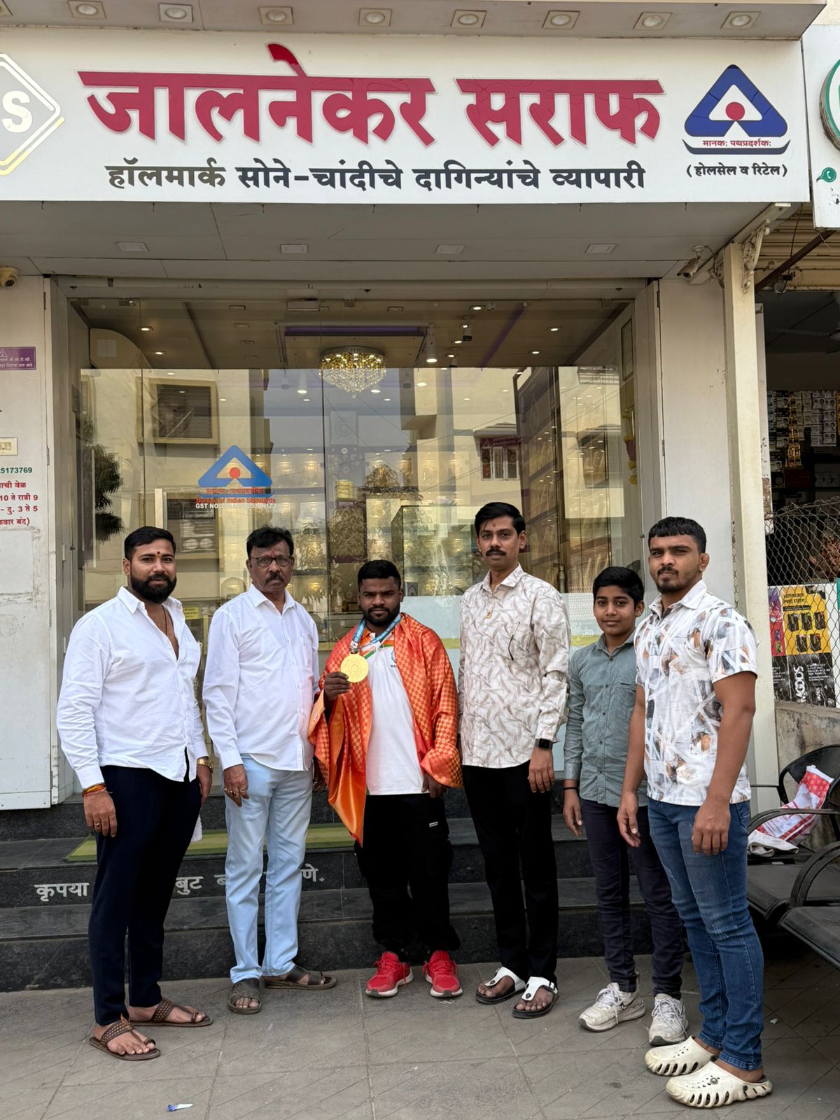 या उल्लेखनीय यशाची दखल जालनेकर सराफ अमोलभाऊ यांनी घेत किशोर पवार यांचा सत्कार करून अभिनंदन केले. किशोर पवार यांच्या यशामुळे गंगावेश तालीम आणि परिसरातील कुस्तीपरंपरेचा नावलौकिक अधिकच वाढला आहे. या विजयामुळे स्थानिक क्रीडाप्रेमी, कुस्ती प्रशिक्षक, माजी पैलवान तसेच नवोदित खेळाडूंमध्ये उत्साहाचे वातावरण निर्माण झाले आहे. आजच्या काळात मोबाईल, सोशल मीडियाच्या दुनियेत गुंतलेल्या तरुणांसाठी किशोर पवार यांचा संघर्ष आणि यशाचा प्रवास आदर्श ठरत आहे. मेहनत, संयम, चिकाटी आणि आत्मविश्वास असेल तर कोणतीही परिस्थिती अडथळा ठरू शकत नाही, हा संदेश त्यांनी आपल्या यशातून दिला आहे. किशोर पवार यांचे हे सुवर्णयश केवळ वैयक्तिक नसून संपूर्ण जिल्हा, राज्य आणि देशासाठी अभिमानास्पद आहे. भविष्यातही ते आंतरराष्ट्रीय स्तरावर भारतासाठी अधिक पदके जिंकतील आणि देशाच्या कुस्ती क्षेत्रात नवा इतिहास घडवतील, अशी अपेक्षा व्यक्त केली जात आहे. या प्रसंगी अमोल जालनेकर, जलनेकर ग्रुपचे अध्यक्ष व जालनेकर सराफचे संचालक यांनी किशोर पवार यांना पुढील वाटचालीस हार्दिक शुभेच्छा दिल्या. यावेळी वज्रकाय हनुमान मंदिराचे अध्यक्ष करण शिंदे, पैलवान निलेश सूर्यवंशी यांच्यासह कुस्तीप्रेमी मोठ्या संख्येने उपस्थित होते.