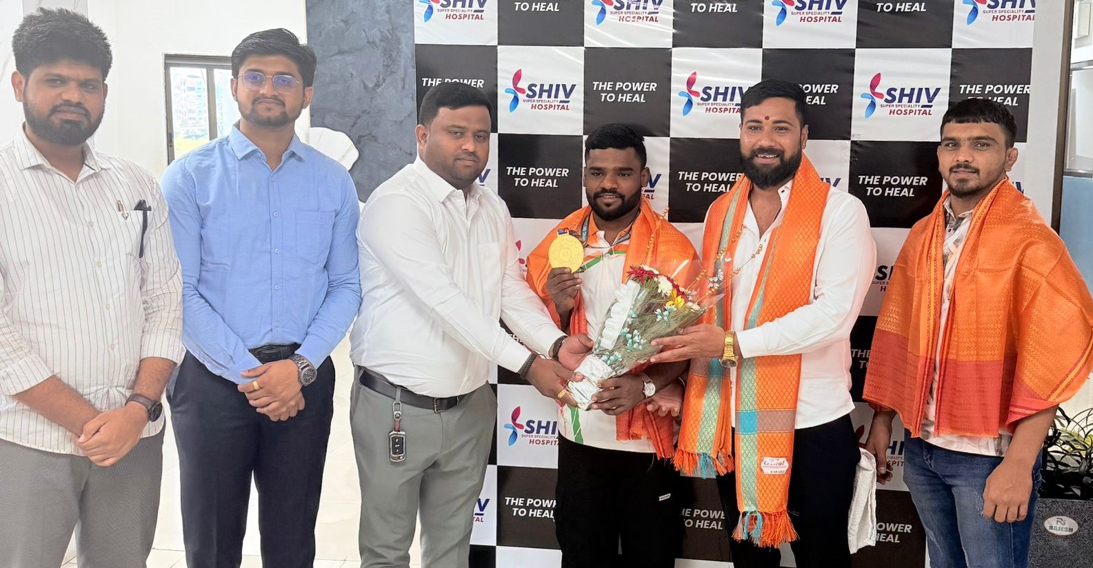 नाशिक (प्रतिनीधी) : पंढरपूरचे सुपुत्र, आंतरराष्ट्रीय कुस्ती स्पर्धेत भारतासाठी सुवर्णपदक जिंकणारे पैलवान किशोर पवार तसेच नाशिकचे नामवंत पैलवान व महाराष्ट्र केसरी स्पर्धेसाठी निवड झालेले निलेश सूर्यवंशी यांचा शिव मल्टीस्पेशालिस्ट हॉस्पिटलतर्फे सन्मानपूर्वक सत्कार करण्यात आला. या कार्यक्रमात उपस्थित मान्यवरांनी दोन्ही पैलवानांच्या यशावर प्रशंसा केली व त्यांच्या कष्ट आणि संघर्षाबद्दल गौरवोद्गार काढले. शिव मल्टीस्पेशालिस्ट हॉस्पिटलच्या सभागृहात पार पडलेल्या या विशेष समारंभास हॉस्पिटलच्या व्यवस्थापक स्वप्नील सरमाळकर, डॉ. नामन चौधरी व डॉ. पियुष पाटील उपस्थित होते. या कार्यक्रमाचे आयोजन त्यांचे यश आणि संघर्षातून प्रेरणा घेणाऱ्या तरुण पिढीसाठी करण्यात आले होते. किशोर पवार आणि निलेश सूर्यवंशी यांच्या आंतरराष्ट्रीय स्तरावरील योगदानाबद्दल आणि कुस्ती क्षेत्रात त्यांनी सिद्ध केलेल्या गुणवत्तेची मान्यता देत, त्यांच्या पाठीशी असलेल्या संघर्षपूर्ण प्रवासाची दखल घेत मान्यवरांनी त्यांच्या कामगिरीची प्रशंसा केली. किशोर पवार यांनी गेल्या वर्षी आंतरराष्ट्रीय कुस्ती स्पर्धेत सुवर्णपदक जिंकून देशाचा मान उंचावला आहे. त्यांच्या यशाने नवा प्रेरणास्त्रोत निर्माण केला आहे. त्याचप्रमाणे, निलेश सूर्यवंशी यांनी महाराष्ट्र केसरी स्पर्धेसाठी निवड होऊन राज्याच्या कुस्ती क्षेत्रात आपले स्थान दृढ केले आहे. त्यांच्या या यशाने त्यांच्या कुटुंबीयांना आणि प्रशिक्षकांना अभिमान वाटला आहे.