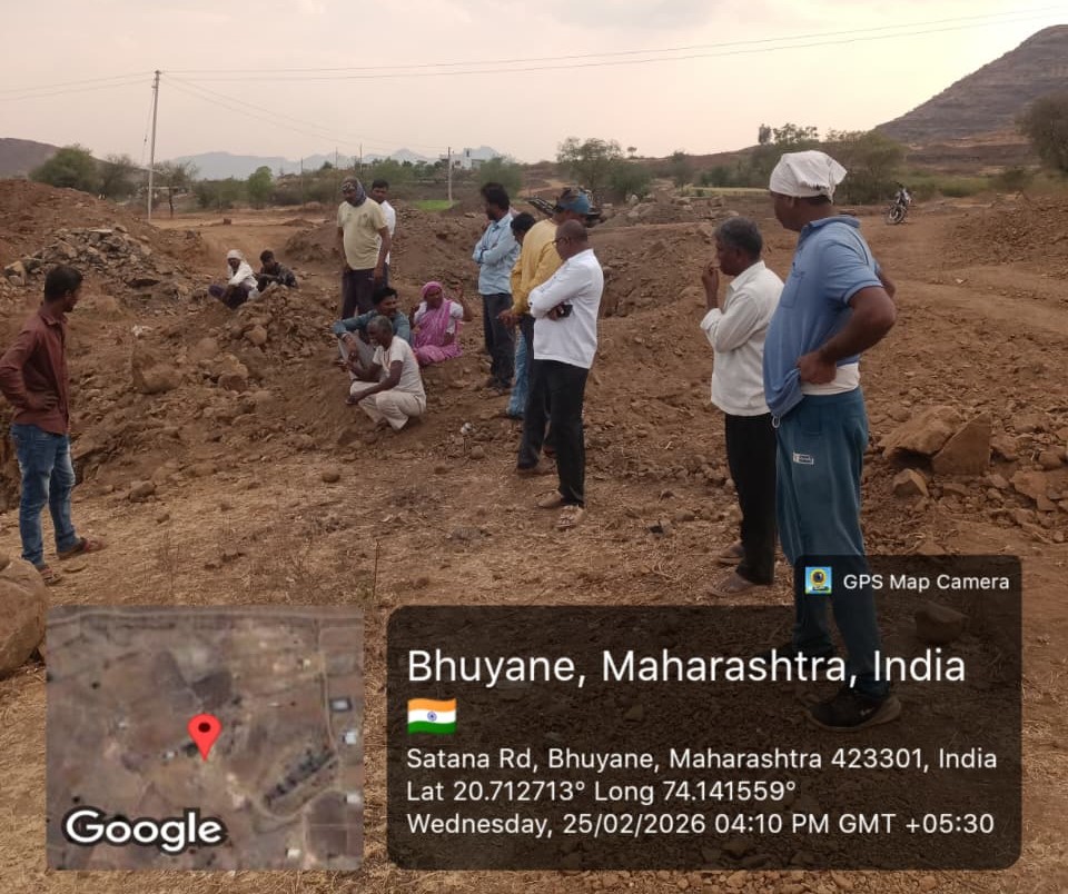 सटाणा (प्रतिनिधी) : ता. बागलाण मधील ढोलबारे शिवारात विनापरवाना गौण खनिज (मुरूम, माती, दगड) उत्खणन आणि वाहतूक सुरू असल्याचा गंभीर प्रकार उघडकीस आला आहे. स्थानिक ग्रामस्थांनी दिलेल्या माहितीनुसार, गेल्या काही दिवसांपासून मोठ्या प्रमाणात यंत्रसामग्रीच्या साहाय्याने उत्खणन सुरू होते. मात्र संबंधित महसूल प्रशासनाला याची कल्पना नसल्याचे समोर आल्याने प्रशासनाच्या कार्यपद्धतीवर प्रश्नचिन्ह निर्माण झाले आहे.